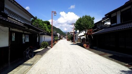 宿は素泊まりだったので、コンビニ食材で朝食。8時ころスタート。靄がかかっていて、時々霧雨。 チェックしてなかったが、直感でたどり着いた勝間田宿。 このあと、計画変更で津山の城東町を目指してR179を走り続けようとするが、ふと以前に見たのではと気が…