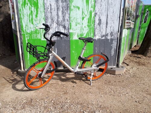中国発、ITを利用した新型シェアバイクのmobike。あちこちに乗り捨てられている。片持ちフロントフォーク。 一方で同業のGobee Bikeの撤退も報道されている。 www.afpbb.com 当局による規制の動きも。そりゃveilibやっとるもんな。 medium.com