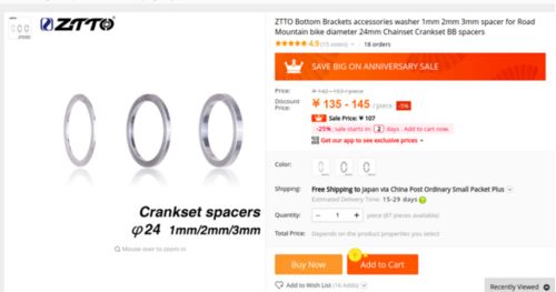 aliexpressに内径24mmのクランク軸用スペーサー(3mm厚×2、1mm×2)とチェーリングボルトシルバー、ブラック各1セットを発注。合わせて1,691円。