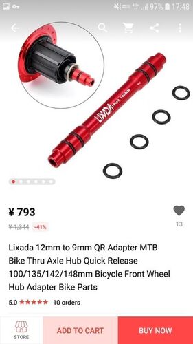 おうち自転車ラック用に100mmスルー12mm/クイックリリース9mmアダプタをaliexpressに発注。793円。