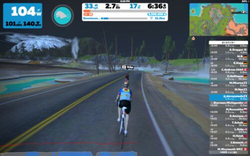 zwiftの新レギュラーコースその2はDowntown Titans。 まずはTitan Gloveへの北からの登り。登り始めは海地獄。 KOMを前にして、海地獄で前にいたコリアのHanさんをまだ抜けない。
