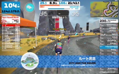 21時からの新エリアスコットランドのグループライドイベント。 その前にBernieとウォーミングアップ。コースはWatopiaのFlat Route。イベント自体が30分なので合わせて60分にするためには25分か30分走りたかったけど、読書感想文を書いていて20分に。ほぼ1周…