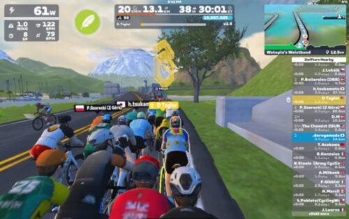 Zwift復帰。軽くTaylorと60分。コースはWatopiaのVolcano Flat。Zwift時の癖で親指を掛けていなくて落車したので、Zwiftでも掛けるように心がけて回す。 Downtownの出口あたりで合流。 約30分で約1周。