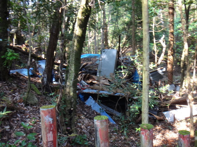 二軒茶屋の近くの道を登っていくが、道のそばにそれらしいものはない。登っていく道があったが、塞がれている。ちょうどそこのところの家の人が外に出てきていたので聞いてみるとやはりその奥だけど、3年ほど前に取り壊されたらしい。ここからお参り。