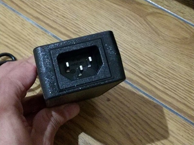 ACアダプタタイプの変圧部のジャックは見たことある形。小型PC用ACアダプタのケーブルを突っ込んだらマッチした。買わずにすんだ。