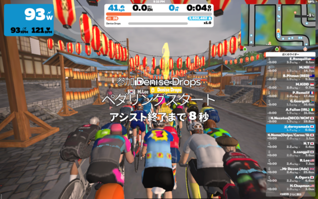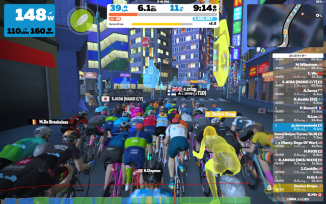帰省でしばらく間が空いてからのzwift。Makuri Islandsが開いていたのでその中で1.6w/kgのDenis Drops、Wandering Flatsを選択。井上尚弥の試合を見てからの21字30分頃からのスタートだったので、30分から40分くらいとみて、20分で終わって、そのあと20分は2.0w/kgくらいの人に移ろうかと思って始めた。