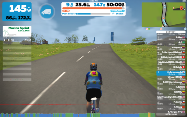60kmのコースなので、完走するつもりは端からなく、60分で終了の予定で始める。予想では峠のあたりで60分かと。