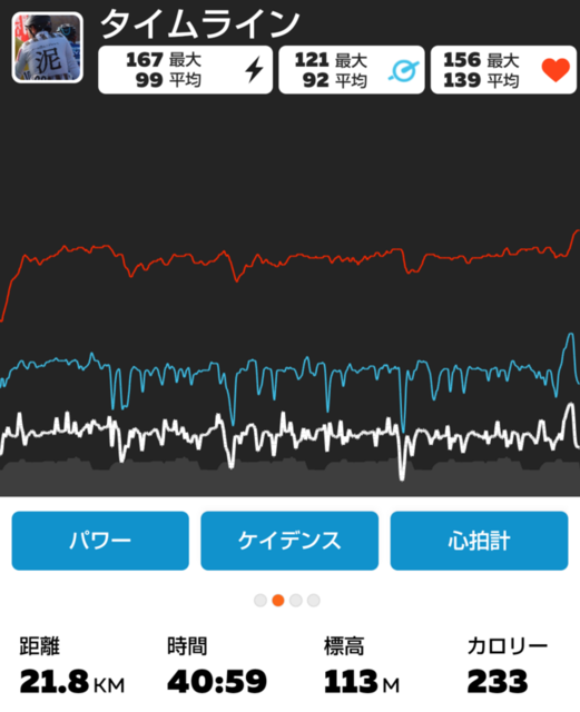 40分でやめようと思ったが、Danが加速して離れてしまった。