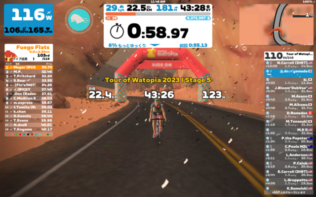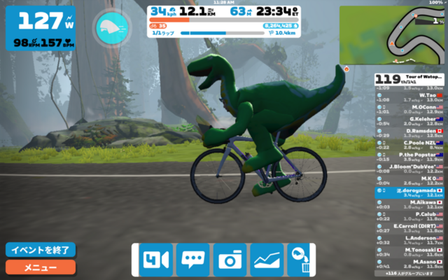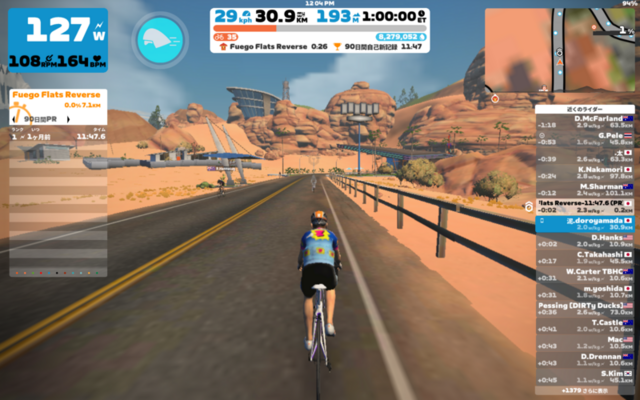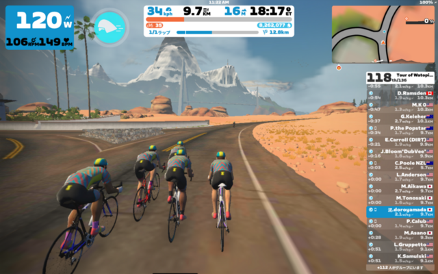 XPブーストねらいでTour de Watopia Stage 5 CのSands and Sequoias。