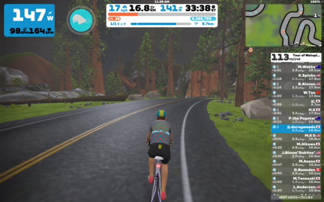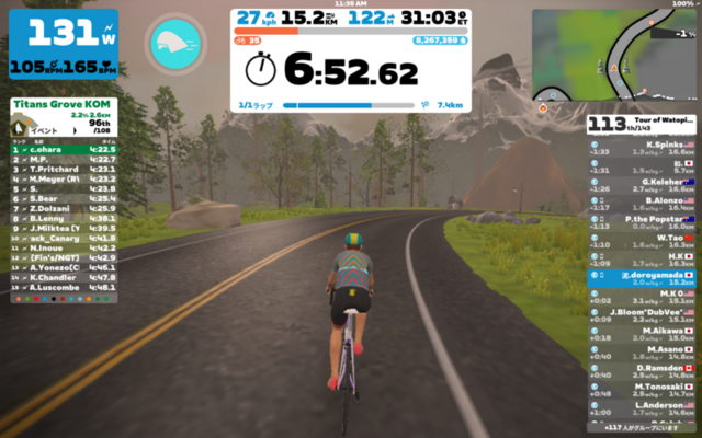 下りきったところで111位。登りで抜きつ抜かれつしながら最後にはちぎっていったウーストラリアのPopstarさんを下りで抜き返した。