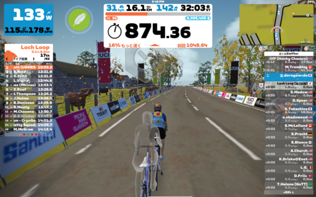 夜にZwift。ScorlandのLoch Loopをフリーライド。