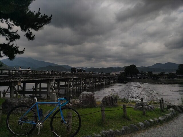 まずは嵐山で定点観測。人は少ない。露出補正の設定ミスで暗い写真になってもうた。