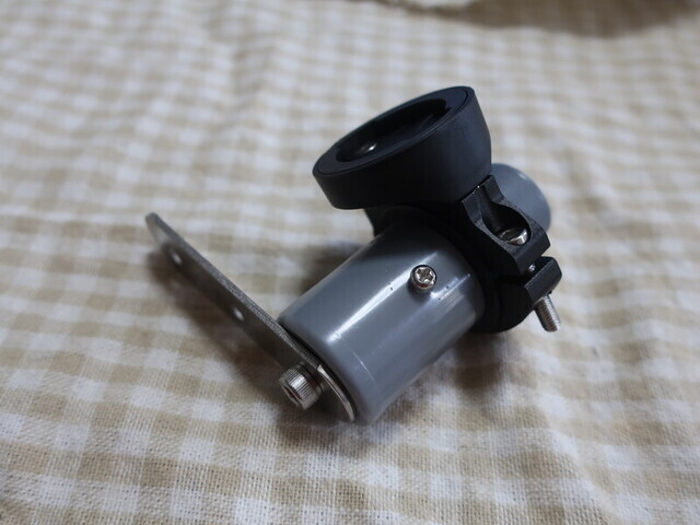 いろいろ考えて、結論はフロントフォークのクイックリリースと一緒に締め込むマウンター。以前こういうやつを作っていたけど、二度と使わないだろうと思って捨ててしまった。捨てたら使うチャンスが出てくる法則。で、家の中にあるものだけで完成した。しかも塩ビキャップには中央に5mmの穴が開いているという好都合。なんのために穴を開けたか、なぜ捨てていなかったかも不明。