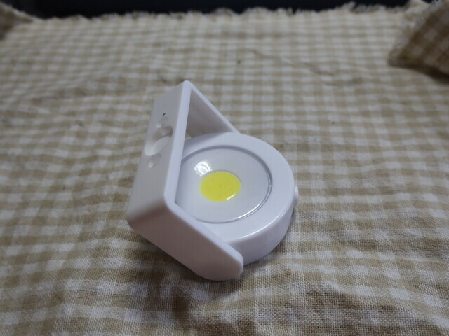 試作途中のもの。100均のLEDライトをステムのボルト延長で取り付けることを考えた。
