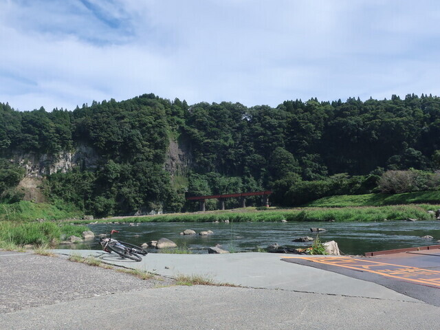 旧国道を下って、犬飼町で大野川本流に合流。R10は交通量が多いので構えていたが、左岸に細くて走りやすい道が続いていた。