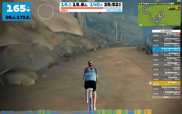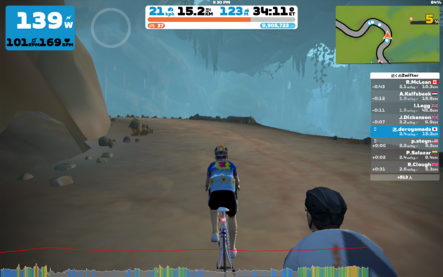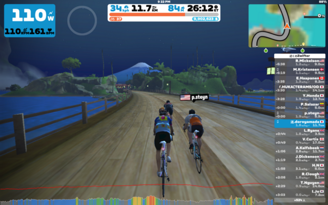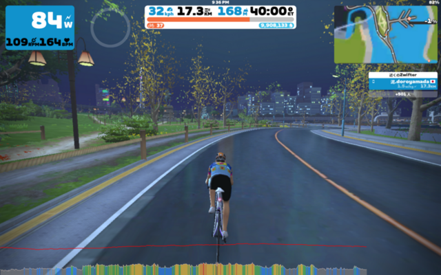 夜はZwift。まずはTaylorと30分と思って走り始める。コースはMakuri IslandsのTurf N Surf。Yumeziに向かう道で合流。