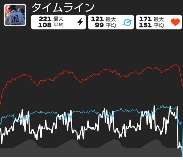 60分で北詰まで戻ってくるのは厳しいかと思ったが、集団走行が功を奏して59分26秒、スプリット13分14秒。1分近く短縮。