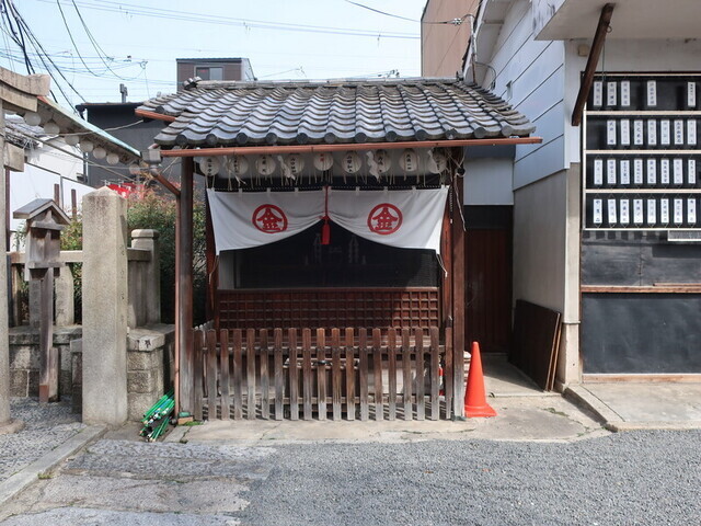 東西本願寺の間。町の名前が蛭子水町。中の様子はわからなかった。表から見える鳥居もない。