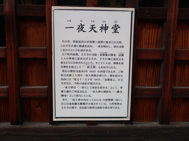 壬生寺内の、道真公にゆかりのあると伝えられる神社。中に六所明神、金比羅大権現も祀られている。