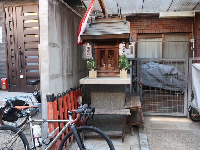 卸売タカギ(と言っても小売業)の駐車場内。自社の商売繁盛を祈るための神社かもしれん。