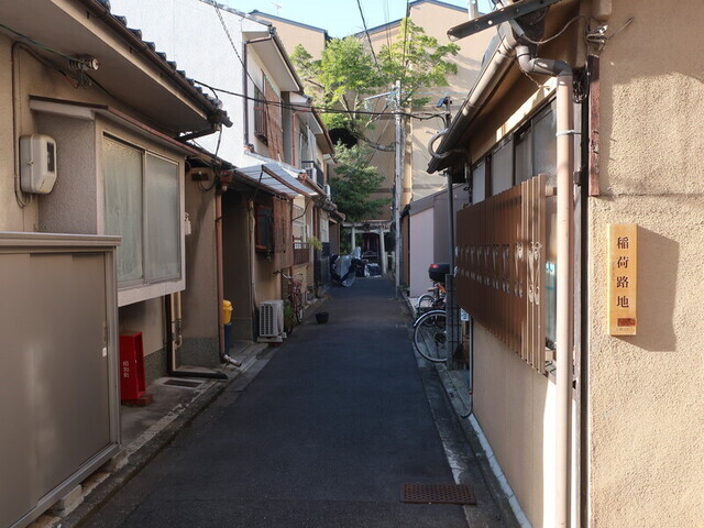 こちらはやや大きな通り。向かって左側の小屋には神輿が保管されているもよう。