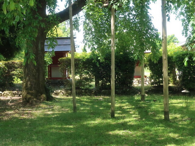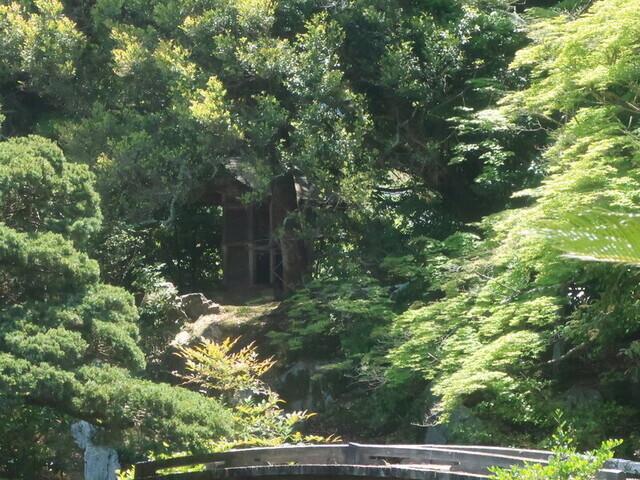 庭園のそっちの方向を見たら祠発見。たぶんこれだろう。庭園のむこうのこのエリアに人がいるってのは、庭園の景観としてマイナスということなんやろうか。