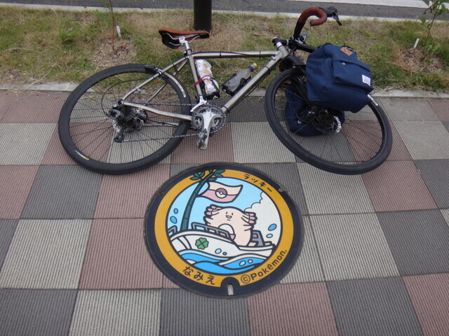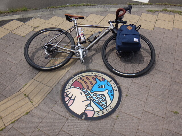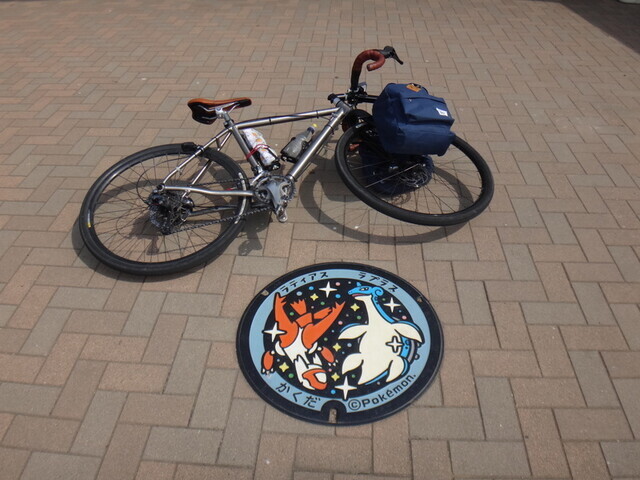 道の駅かくだでポケふたゲット。ここの自転車置き場はサドルを賭けるタイプではなくホイールを挟むタイプ。