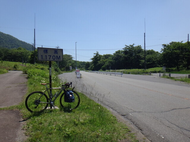 再スタート。この付近から先は下の方よりは勾配がゆるいという事前情報、標高は1100m台。伊香保温泉の端に「この先カーブが30個ほど続く」という看板があったし、カーブごとに番号がついている。