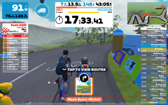 登りきったあたりで40分かなと思っていたけど、Taylorの登りは想定以下で、43分かかった。
