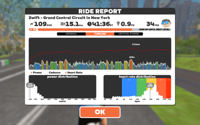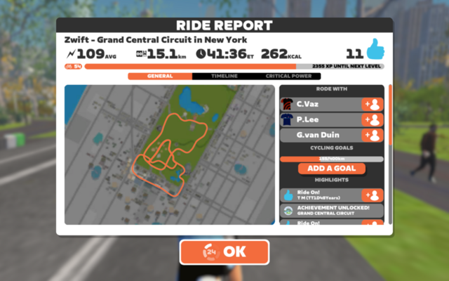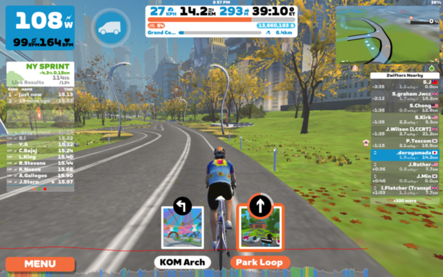 2周めにさきほどのKOMの謎が解けた。一旦時計回りKOMのセクションにいったものの、右折してそこから外れ、その後に反時計回りのKOMセクションにいったと。Zwift全般に言えるけど、逆方向のKOMには全部ReverseとかCCWとかつければいいのに。10秒更新。