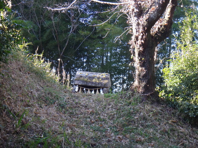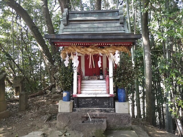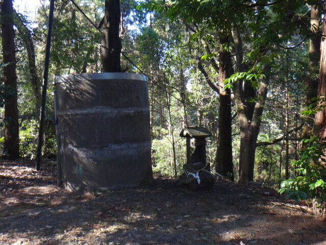 R10wo南に走って、Edgeの表示を見て通り過ぎたのを知り戻ったらそれらしきものがあったので近づいてみる。位置からしてここで間違いなさそうだが、鳥居がないし、表示もない。