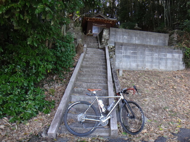 一旦下まで下って、田尻グリーンハイツに登って、南西の端から登っていって、秋岡集落のはずれに天祖神社。あとで見たら日枝神社からショートカットがあった。