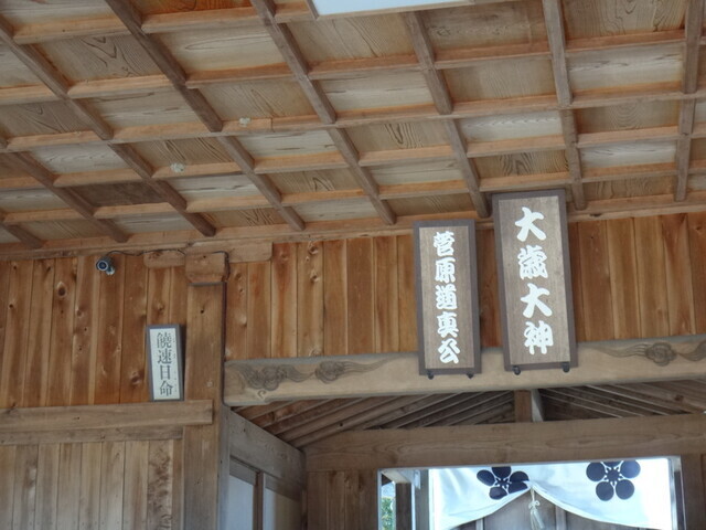 階段を登って拝殿へ。拝殿には大歳大神、菅原道真公と、ちょっと離れて饒速日命。扁額は歳神社、天満社。ここも大分に多い天満社の一つか。