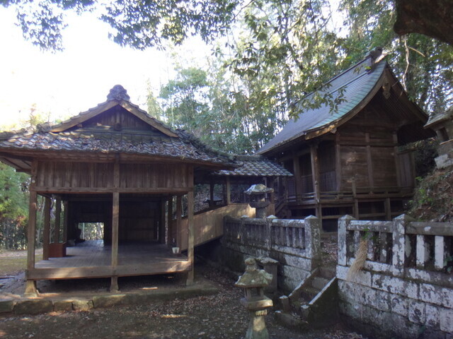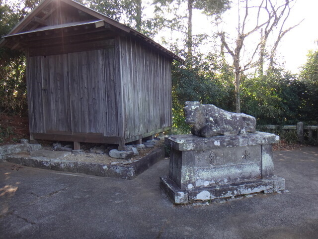 上野の八坂神社が島津来襲時にここに退避していたということで、祠が残っているらしい。ということは祭神は素戔嗚命(神仏分離令以前は牛頭天王)かな。