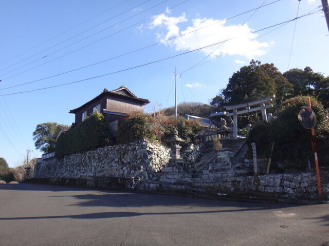 東隣は臨済宗妙心寺派常楽寺。石垣がつながっているし、間にある家ともつながっている。西には常楽寺の霊園がある。実質一体化して動態保存されとるのかも。だとすると敷戸神社と相似。