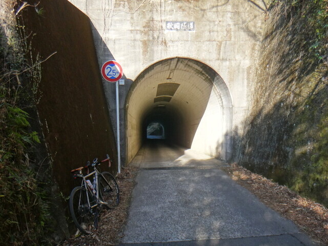 登ってきた道を下って、途中から古そうな道に入ってみる。通っていた中学校の校区だけど、知らないトンネルがあった(当時なかったかも)。