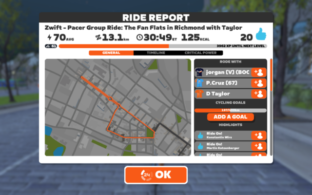だいぶ回復してきたけど、まだ元に戻りきっていないのでゆったりZwift。コースはRichmondのThe Fan Flat。