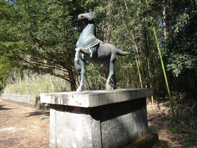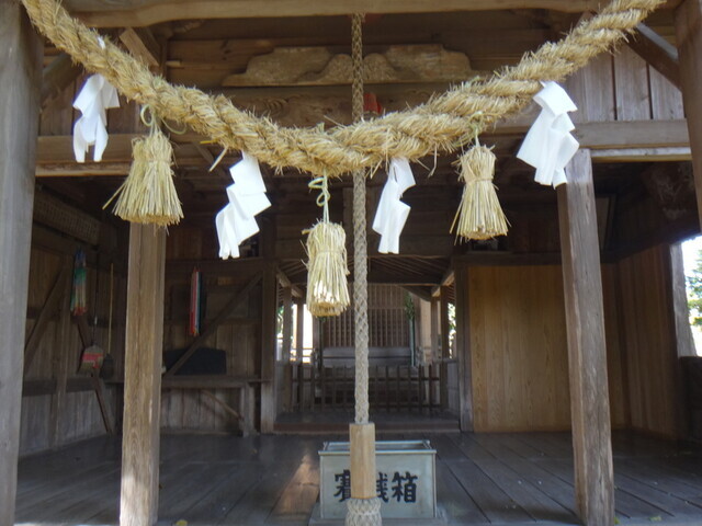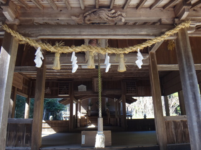 拝殿の本坪鈴のところに掲げられた縁起。こちらは「八幡社」。豊後の八幡社は大友能直の赴任後に鶴岡八幡宮から勧請した若宮八幡社が多い。若宮とは八幡神の子という意味で、祭神は仁徳天皇や神功皇后、仲哀天皇であることが多いが、ここは応神天皇。源為朝についてあらためて調べてみたけど、いろんな伝説は御霊信仰による神格化の創作が多そう。