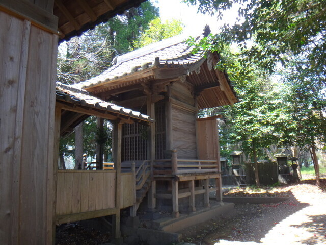 縁起には天満社を改修したとあるが、左右に新しい社があり、どちらが天満社か、天満社ではない方はどの神様なのか明示されていない。これは向かって左側。瓦の神紋が左三つ巴なので、八幡社か、あるいは熊野社重ねの可能性も。