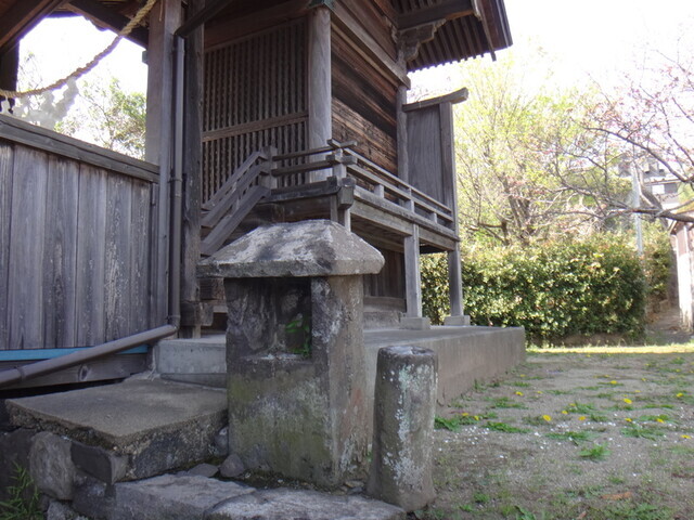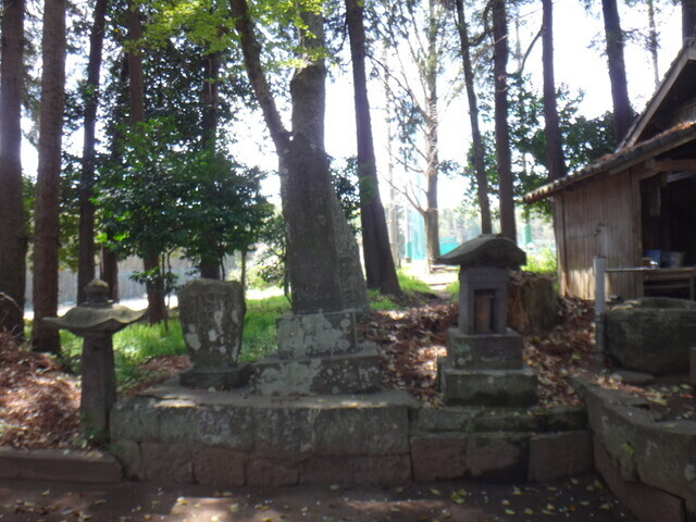 拝殿左側の石碑。利光近松さんの頌徳碑。小田急電鉄創業者の利光鶴松さんもこの粟野の集落の出身。お名前からして親戚筋かもと思って検索したら弟さんのもよう。なお、私の母の兄の奥さんの妹(姉だったかも)が利光鶴松さんの子孫と結婚しているので、遠い親戚と言えなくもない。