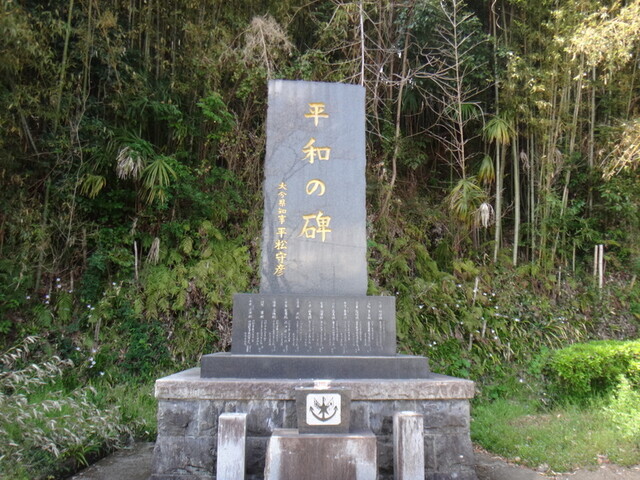 平和祈念の碑。地域の戦没者名が刻んである。これもこのあたりに多いパターン。ただここは昭和61年(1986年)建立と、比較的新しい。