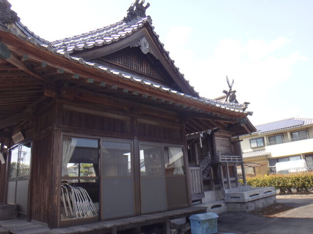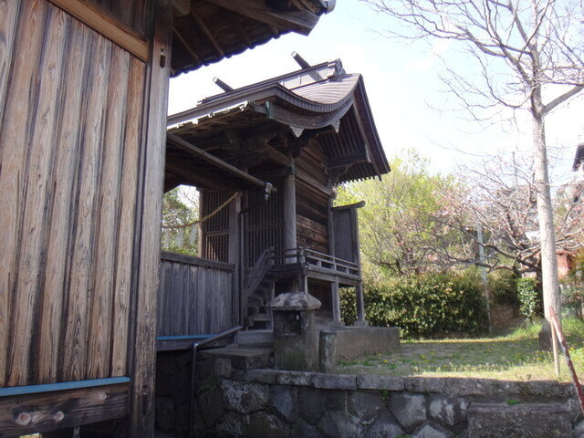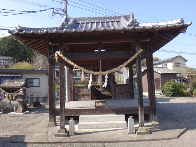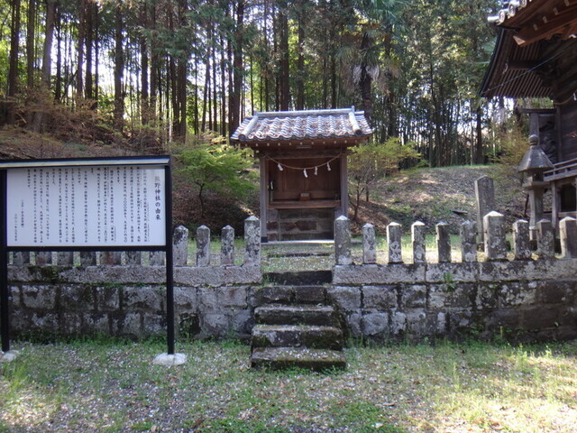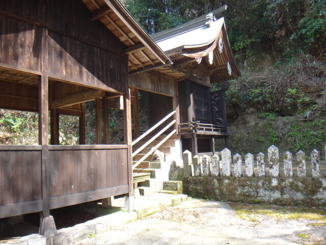 縁起。祭神は事解男命、速玉男命、伊邪那美命。改修は平成22年(2010年)。この山の上のカームタウン木上が第1期2007年、第2期2010年の造成完了なので、その関連で地元にも資金が降りたのかもしれない。