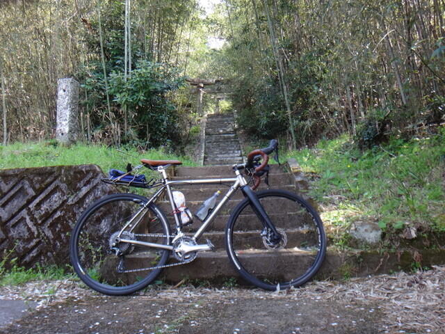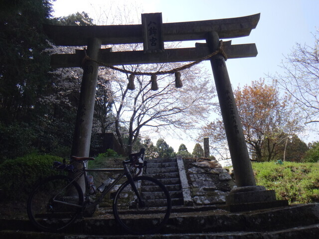 高瀬の日枝神社は想定していたとおり山の中腹のもよう。東参道の石碑があったのでそこから登ってみた。すぐに鎖があったので、そこに自転車を置いて徒歩で。