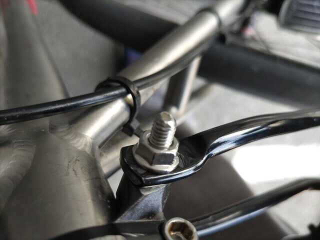 キャリアのボルトが短く、ちょっと緩むと脱落しそうな状態だった。5mm長い55mmがあればよかったが、なかったので60mmを調達。乗ってみたらやはり腿に当たる。