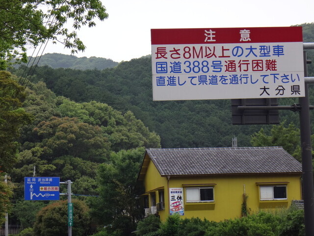 蒲江波頭津ICの分岐から再び県道122号が細い道になる。峠が県境。次の集落直海までハイカー1ペアとすれ違ったのと車1台に追い抜かれただけだった。なお県が変わっても県道番号は122。
