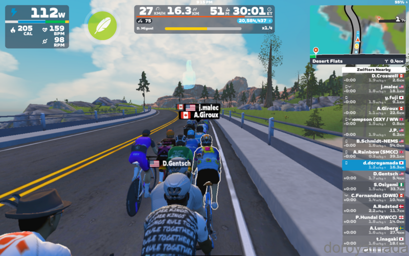 のつもりでいたら、スタートして2分でMiguelが追い越していく。いったんついていくが、残りほぼ30分はしんどいと考え一瞬足をゆるめた。が、すぐに思い直して踏み続ける。